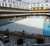 Variodeck supplied and installed a pool cover in a hotel in Paris. This pool cover is placed on the swimming pool which is located in the middle of the hotel which can be used by residents. Hotel Molitor is famous and popular because of having a swimming pool in the center of Paris.